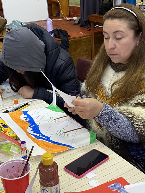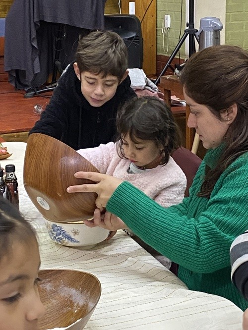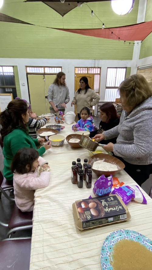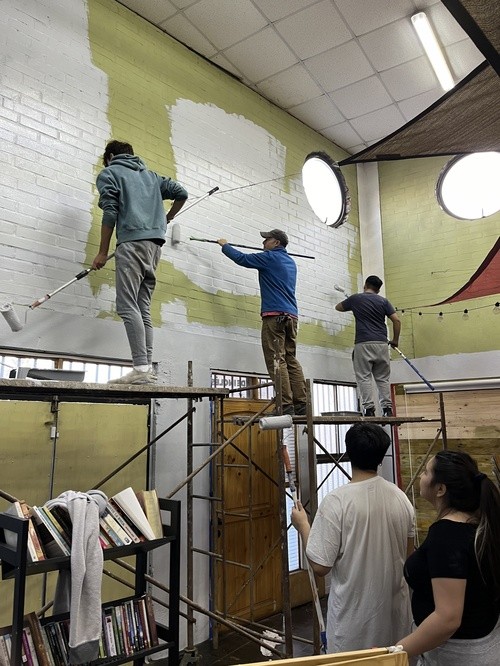 Today was a good day. We started with a delicious breakfast of bread and eggs and got ready to do some more painting and work around the church. We worked hard on murals and general painting and organizing until dinner which was Mapuche Sopapillas made by German himself with guacamole and pebre which is like a Chilean salsa which we have at nearly every meal. After dinner we played games and watched soccer.