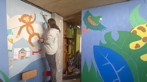Our last work day was spent painting, building and organizing. Owen’s height came in handy to reach the tallest walls; Stephanie, Nathan and I finished painting murals; Henry assembled IKEA storage units and Greg and Charlie installed shelving in the kitchen for much needed storage. What would normally take Greg a a few minutes, took much longer... drilling into brick was tricky work!